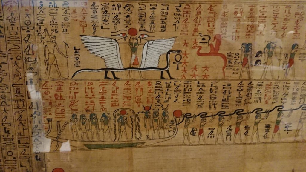 こんな感じでヒエログリフとカルトナージュがたくさん並ぶ死者の書を眺めていたら