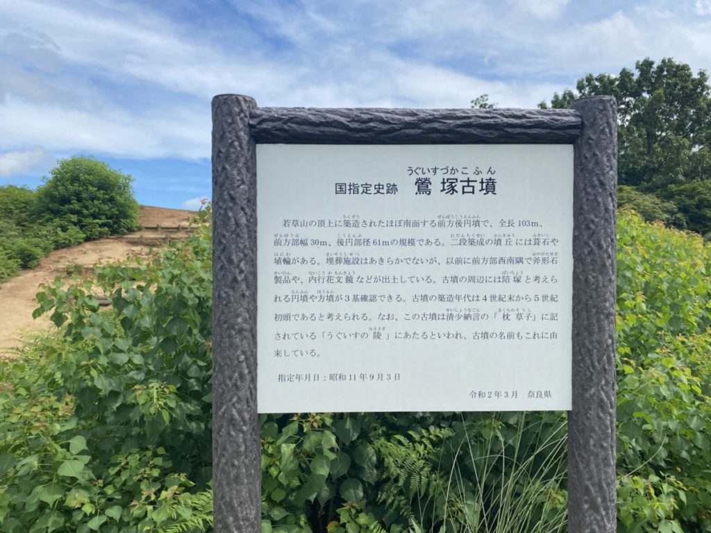 鶯塚古墳は、若草山三重目の一番頂点にある古墳です。前方後円墳で、4世紀末~5世紀末の築造と言われているそうです。『枕草子』にも記述があるとか。