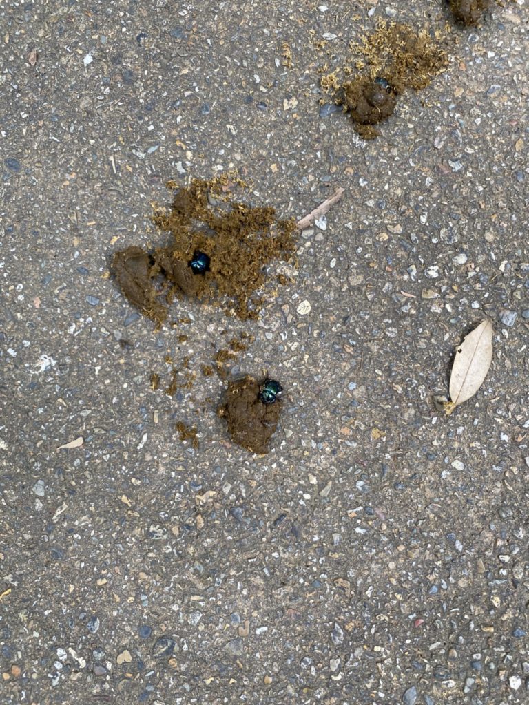 しらべてみると、オオセンチコガネという虫だそうですが、地域変異が多く、通常この虫は赤なのに対し、奈良公園一帯に住むオオセンチコガネは瑠璃色をしています。このことから「ルリセンチコガネ」と呼ばれているそうです。