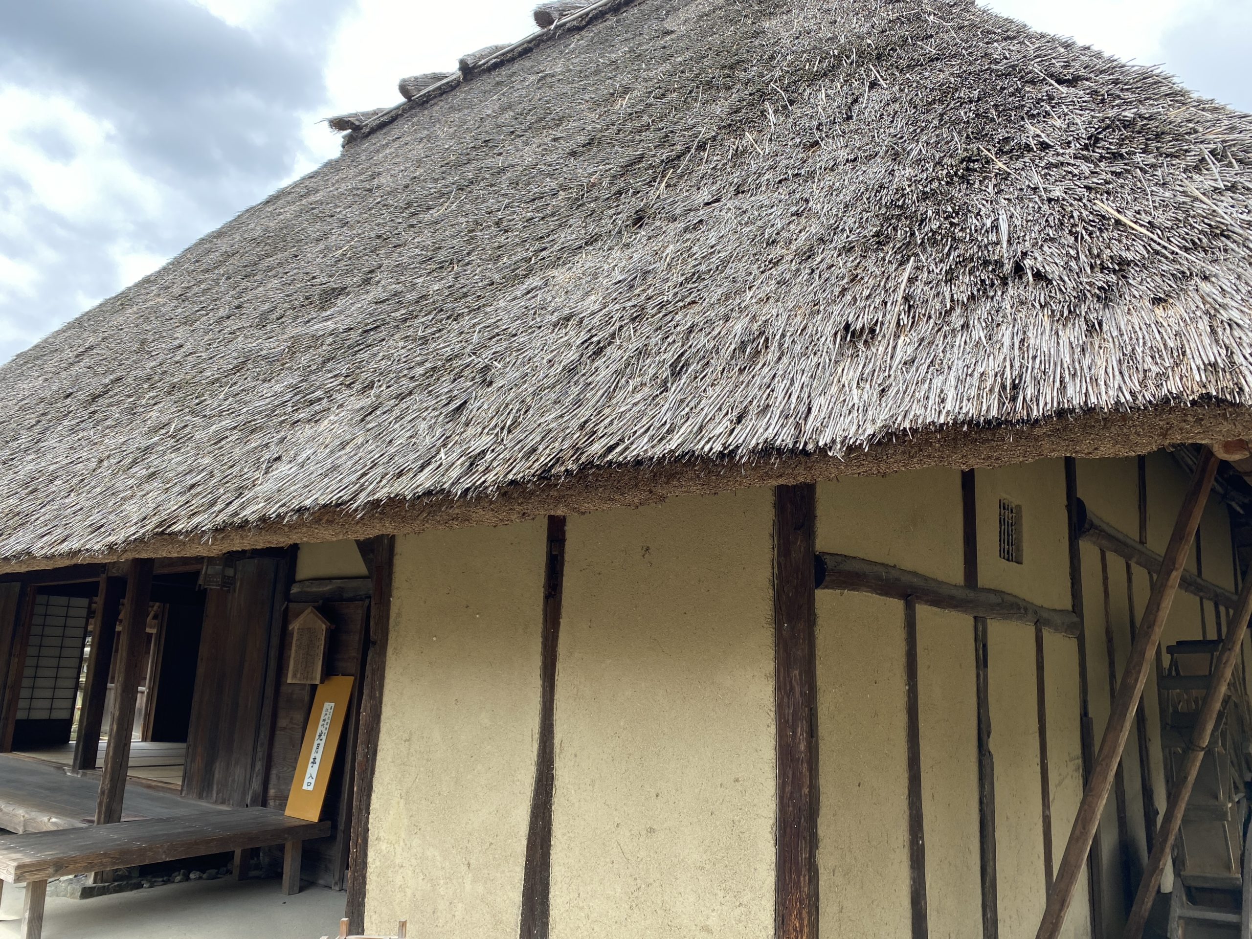 敷地内の庭園を散歩すると、敷地内にお寺の建物とは違う雰囲気の茅葺き屋根の家が。この家は月ヶ瀬にあった邸宅を移築したもののようです。
