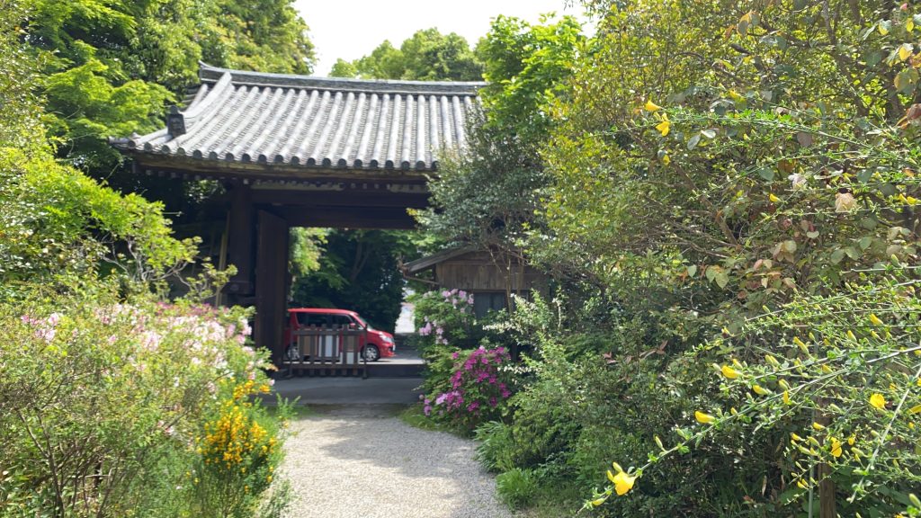 今回は車で参拝しました。お寺までの道は狭かったものの、お寺の前に数台の駐車場があり、停めることができました。こんなに細い道でも宅急便のトラックが通り抜けていたりするので、奈良の人のドライビングテクニックにはいつも驚かされます。