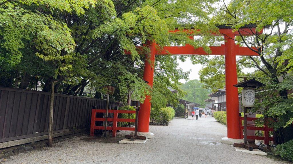 お団子で小腹が満たされたところで、お目当ての下鴨神社に向かいます。境内はなかなか広く、雨の中参拝するのに一苦労でした。