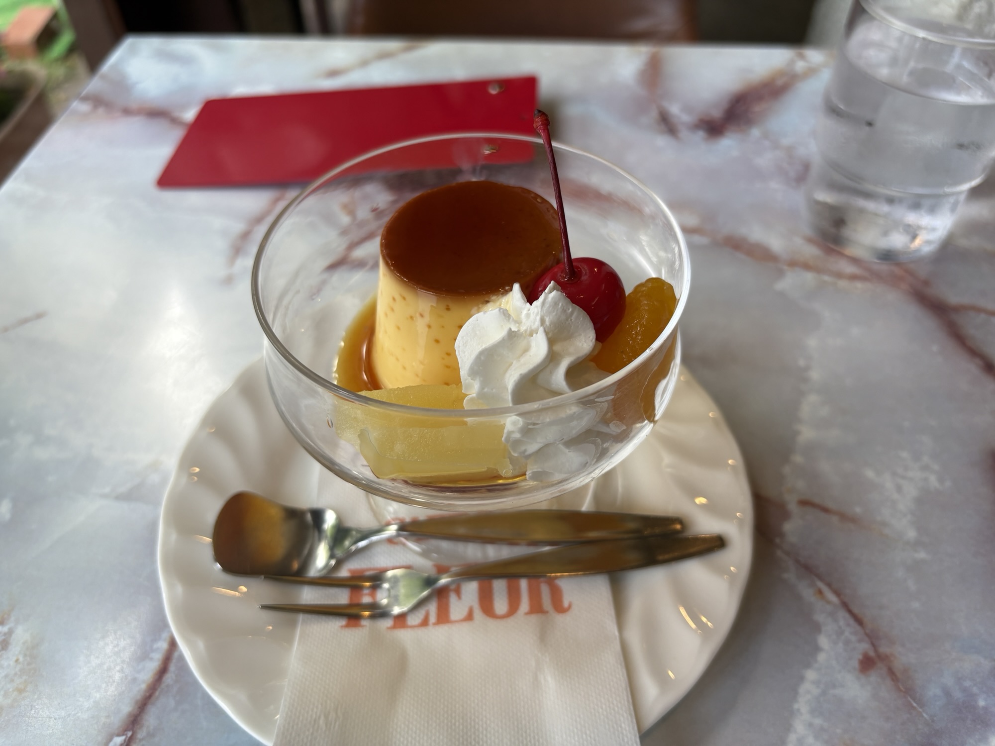 暑い中、水分不足の状態で急に冷たいものを食べるとどうかなと思ったので、プリンを注文しました。後から知ったのですが、このお店の名物はこのプリンなんだそうです。